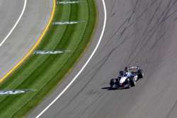 With the temperature rising towards 30 deg C, the track conditions were going to favour those with Michelin tyres, and it was Montoya who made the best start. His Michelin-shod Williams almost passing Michael Schumacher through the first corner on the outside line. He was, however, forced to drop back to hold second from Barrichello. As the cars started the third lap, Barrichello made his move on second placed Montoya, out-braking the Colombian into Turn One. He then caught the leading car of Michael Schumacher, who let his team-mate pass and into the lead.