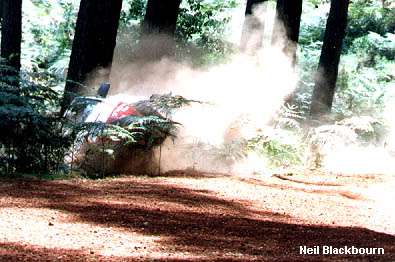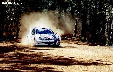 Marcus Gronholm and Timo Rautiainen were having a quiet event learning their way around, and each time they lost time, they were able to pull that time in again in the Peugeot 206WRC. Francois Delecour and Daniel Grataloup retired the night before with gearbox dramas - not that they were on the pace anyway! Richard Burns and Robert Reid had fought their way forward all day, and he and Sainz/ Moya were breaking stage records left right and centre. The Spanish combination had their eyes on the win almost as intently as the British team, and it was evident that the stages on the third leg around the famous Bunnings complex would be a sight for sore eyes tomorrow provided the two leaders stayed upright. In F2 the battle for the championship was wide open, with both teams, Renault and Hyundai still with both drivers running, although Tapio Laukkanen and Kaj Lindstrom had problems in their Megane Maxi and dropped to 54th outright. They would be back to 23rd by the end of the second leg! Kenneth Eriksson and Staffan Parmander won this event outright for Mitsubishi in 1995 and were showing the way in the Coupe Kit Car Evo 2 to the Aussie newcomer Martin Rowe, and the former winner of the event in 1994, Derek Ringer (C McRae in an Impreza) were ahead of the other Coupe Kit Car of Alister McRae and David Senior, while chasing them hard in the VW Motorsport's new Golf Mk 4 was Mark Higgins and Brian Thomas, and the in fact ended the day in front of the McRae Hyundai. The stage times for Eriksson was around or in front of the top Group N times for much of the day. Nittel and Harryman would take almost a minute lead into the final day of the rally to Japanese Arai and Brit Freeman, while Ordynski would be back in third almost a minute further back. The stages around the Bunnings complex are probably best known for the jumps and watersplash down the hill that completes two of the four stages that make up Leg 3. Apart from the final stage, which is televised live, but not for extra points, all stages are over 25km's. In fact, two are over 35km's! The stages would be dry and dusty, and they are longish and fast, with some sections with trees right beside the road, and some very open sections. |