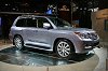 Unveiled at the New York Auto Show, the new LX 570 has been completely re-skinned. The car features a more rounded and car-like appearance than its LX 470 predecessor, revealing Lexus's new grille (first seen on the LS flagship saloon) and more sculpted body panels than its boxy forebear. Though it maintains the same wheelbase as the model it replaces, its length has grown 102mm and width has increased 25mm.