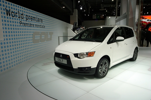 It's a case of new faces at Mitsubishi as the Colt receives the family look in Paris. The Ralliart badge makes an appearance too on the small hatchback, Mitsubishi adding a Ralliart model to the Colt range to replace the