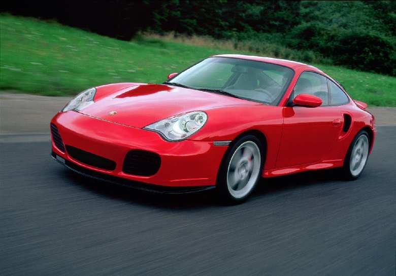 The new 911 Turbo will compete with the latest Ferrari F360 Modena with a top speed of 189mph and a 0-62mph time of only 4.2 seconds. This is achieved with a 3.6-litre water-cooled version of the famous flat-six engine. No less than two turbos are employed to boost maximum power to 420bhp (at 6000rpm). The maximum torque figure brings tears to my eyes: 413lb.ft - at just 2700rpm. My God this car is going to feel quick. To help the hapless driver keep up is a six-speed manual gearbox and radiators which have 50% more surface area. |