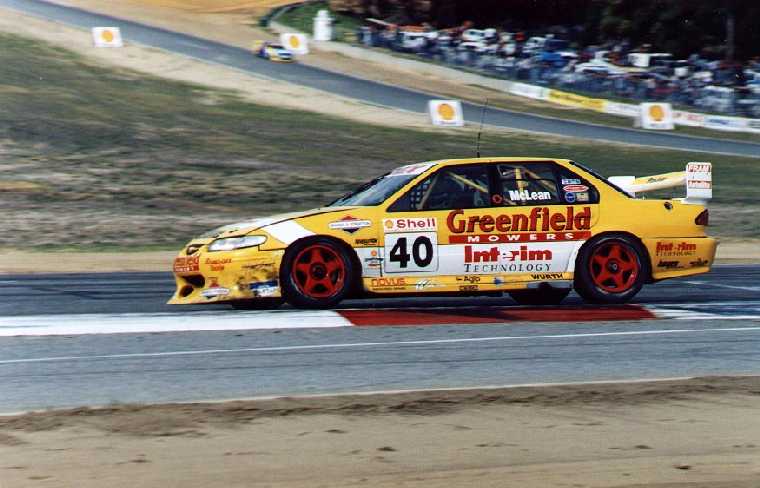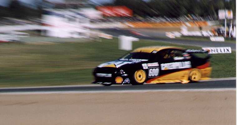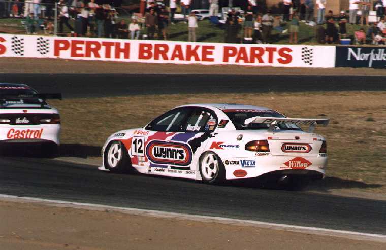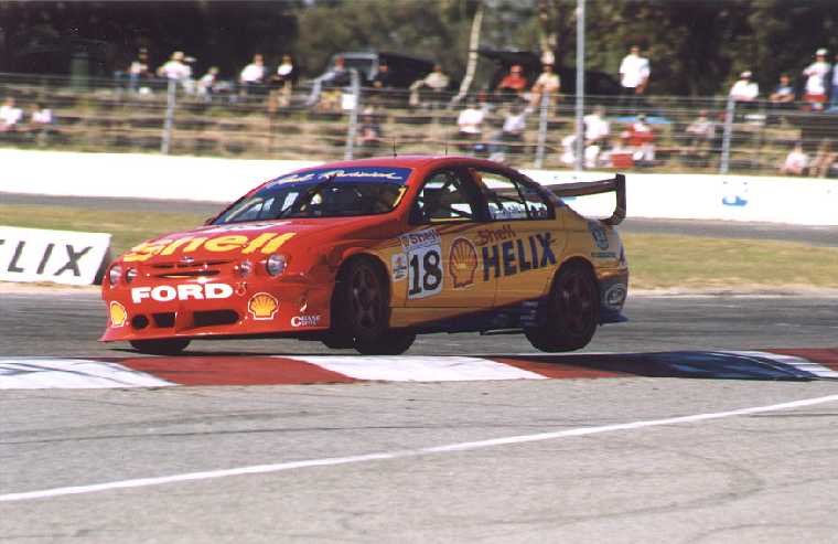 Race one on Saturday afternoon saw a battle behind Lowndes as he scorched off into the lead, while Mark Skaife had some early attention from Bright, and then from Glenn Seton in the factory Falcon AU. The racing was tight, but early on Russell Ingall fell out of the leading pack and was going backwards, when he was forced to retire due to engine problems. 'The Enforcer' would be back on Sunday. Another to find the DNF list was young Kiwi Greg Murphy, who slid off the circuit at the bottom of the big hill entering the long right hander at the far end of the circuit, 'Kolb'. In a close battle for 7th 8th and 9th with the likes of Ingall, Perkins and Falcon AU driver John Bowe, Murph (no relation to our Murph!) ended up in the infamous WA sand, and that was it for race one. He also would be back. |