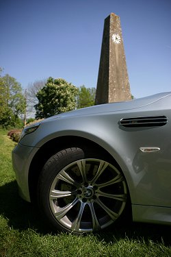 Power delivery, although manageable enough when in manual mode, can be abruptly disturbed if the seven-speed SMG (sequential manual gearbox) is left to shift on its own. The transmission has five shift strategies when fully automatic 'D' mode is engaged and six for the full manual, with each setting holding gears longer. With a single indicator showing, the M5 is quick to shift into a higher gear and the change seems to take an age, whereas it will hold on to gears all the way to the 8250rpm redline in the highest setting and drops in the next ratio with a bang. We found smoother transitions could be achieved by manually shifting and gently lifting off the accelerator, with a forward motion on the gear lever to summon a lower gear and a backward slight of hand to upshift (tactile steering wheel mounted paddles can also be used). The throttle blip while downshifting is incredibly infectious and the V10 simply beckons revs, pulling with locomotive-like pace at 5000rpm all the way to its atmospheric redline. Acceleration is so effortless and the engine note such an auditory delight that it seems the M5 would also make quick work of acquiring sufficient points to have your licence suspended. Restraint must be employed to avoid such an occurrence.