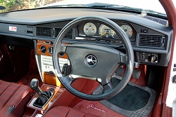 A manual gearbox is always a surprise in a Mercedes, this 190E featuring a five-speeder. Although the company is often criticised for the quality of its manual transmissions the 190's is slick enough, especially given the 200,000 or so miles that have rolled under its wheels. The engine is lovely too, the 2.0-litre unit not powerful, but smooth. It delivers 116bhp, but it's the 126lb.ft of torque that really defines its personality. The easy pull from low revs makes the 190E a graceful driver, it particularly impressive cruising on the motorway. Part of that is undoubtedly down to its 1,170kg kerb weight, which is featherweight by today's standards in this class. Economy isn't great with a combined consumption figure of 24.8mpg, but CO
